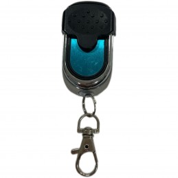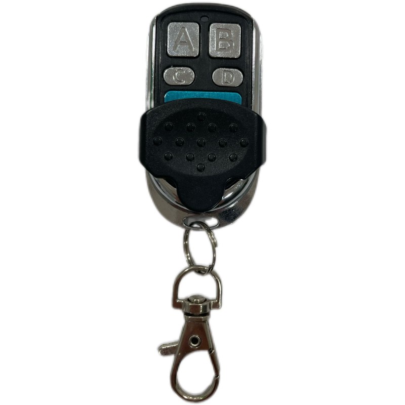 Control remoto universal de 4 botones con tecnología de clonación de código por modulación ASK. Compatible con dispositivos que operen en 433 MHz, ideal para automatismos residenciales o comerciales. Fabricado en PVC resistente con diseño compacto tipo llavero. Su sistema de copia cara a cara permite replicar fácilmente controles existentes.