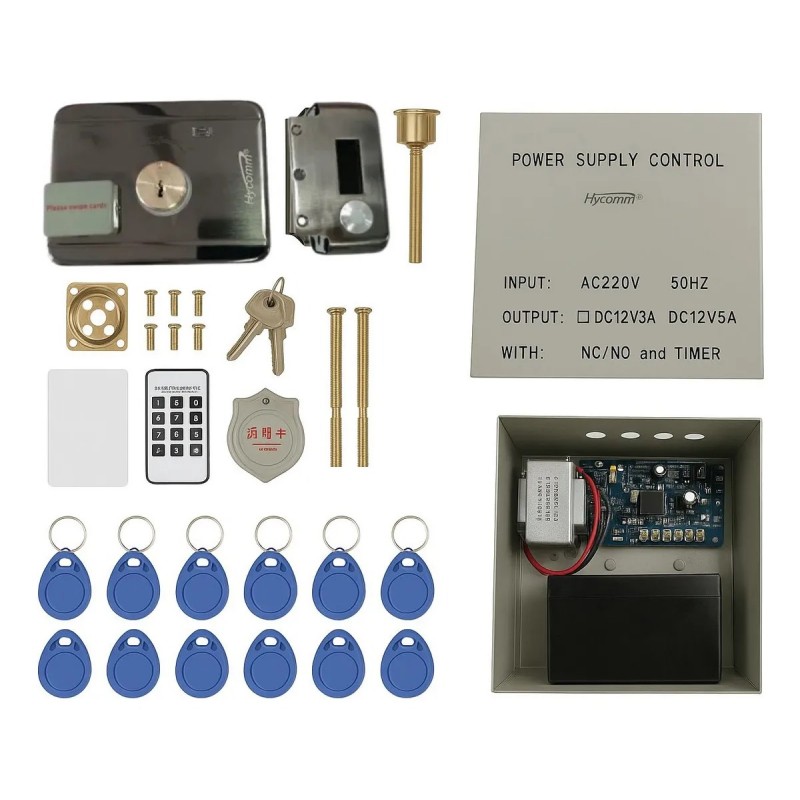 Sistema de control de acceso electrónico diseñado para la apertura segura y automática de puertas mediante tarjetas o tags de proximidad RFID. Incluye fuente de poder con batería de respaldo, lo que permite su funcionamiento continuo incluso durante cortes de energía eléctrica.